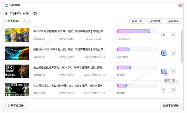 2. 多线程下载:最多支持 8 个线程,便于提升下载速度。