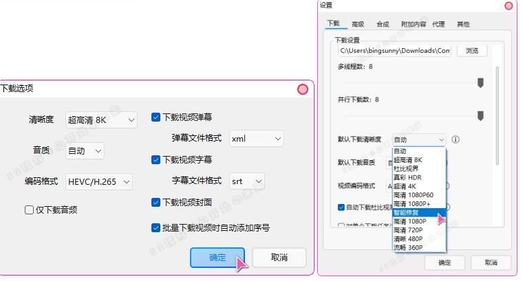 5. 清晰度与音质设置:可在下载前自定义视频清晰度和音质。