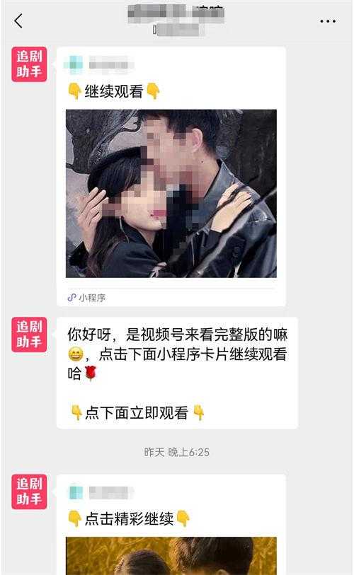点击继续观看全集,是一个企业微信,当你添加好友后,自动给你回复信息,自动推送你点击的看的短视频,后面了解这样的玩法是最近比较火的一个领域,短剧,就是把一些小说,或者是编辑的内容拍摄成短视频。