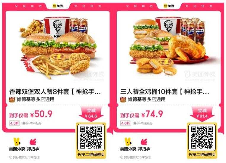 肯德基50.9元到手双人桶8件套