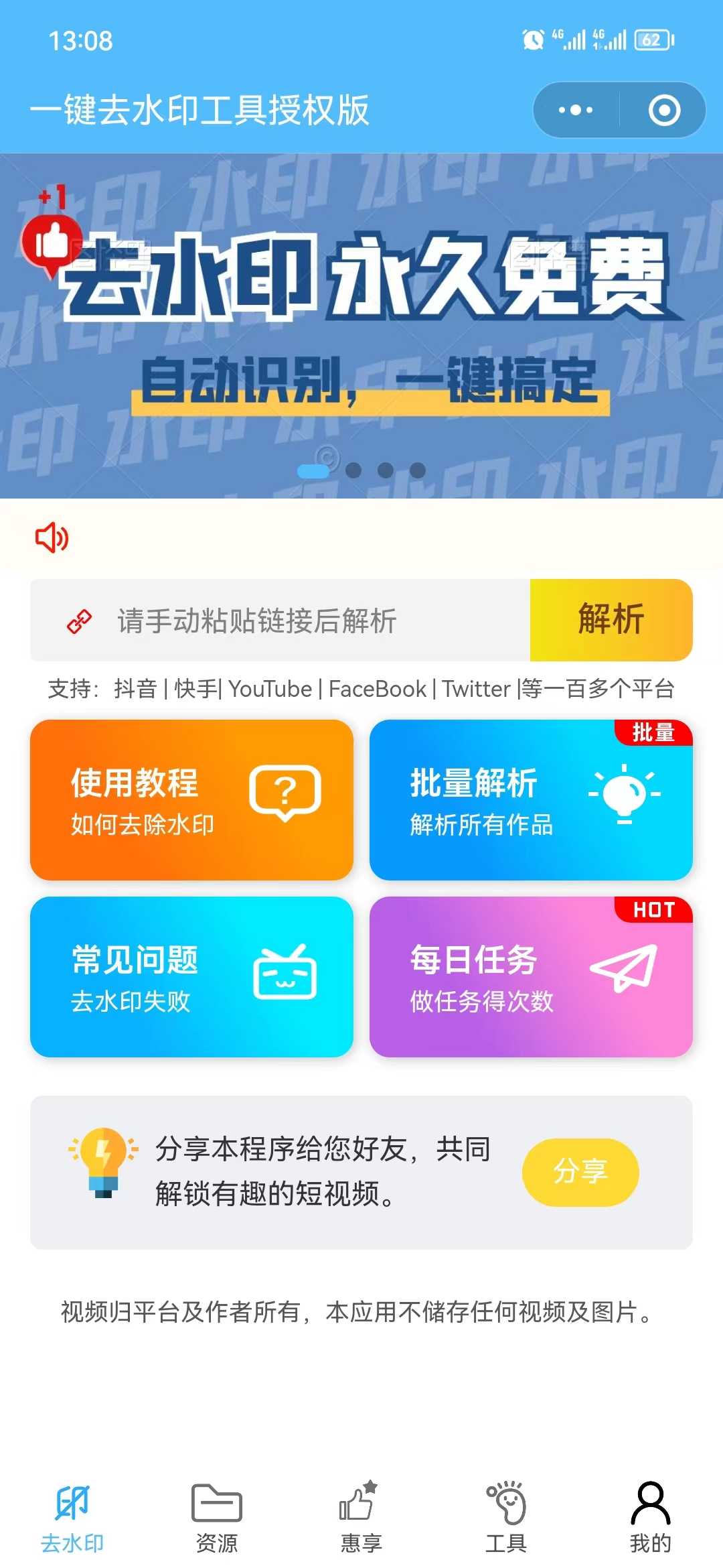 微信去水印小程序源码+小程序新版本首发+批量解析/修改MD5