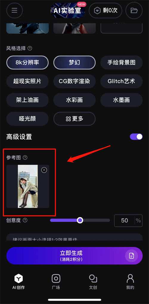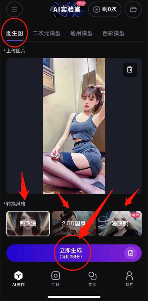 这个就更简单了,我用的这个APP有两个方法可以实现,第一个,一键图生图,将客户发给你的图片保存到手机里,将图片上传后,选择照改漫即可,第二个,将之前发素材收藏的咒语和参数拿出来,之后把客户发的图片上传进来作为参考图,这样生成出来的照片就和客户发的图片一致了。直接保存下来发给客户。