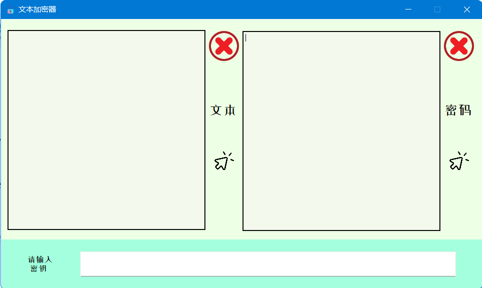 左边的框里输入想要加密的文字,点击左边的白色箭头,右边的框里即可出现加密过后的文本