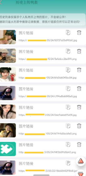 2、目前功能可检测接口状态,提交上传成功/失败提示,记录历史上传过的图片和图片链接(点击图片即可预览图片、支持复制和删除历史上传的图片/链接)