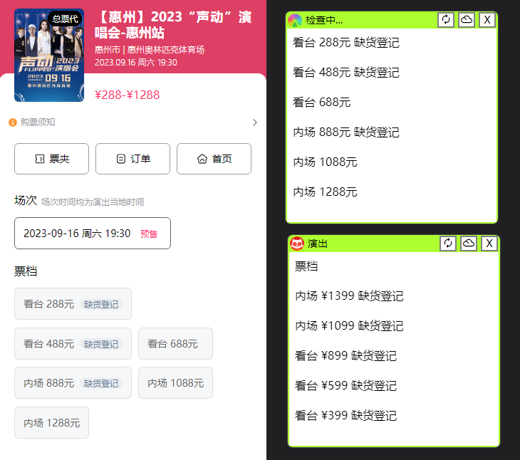 演唱会通用_余票监控+抢回流票(教程+软件)