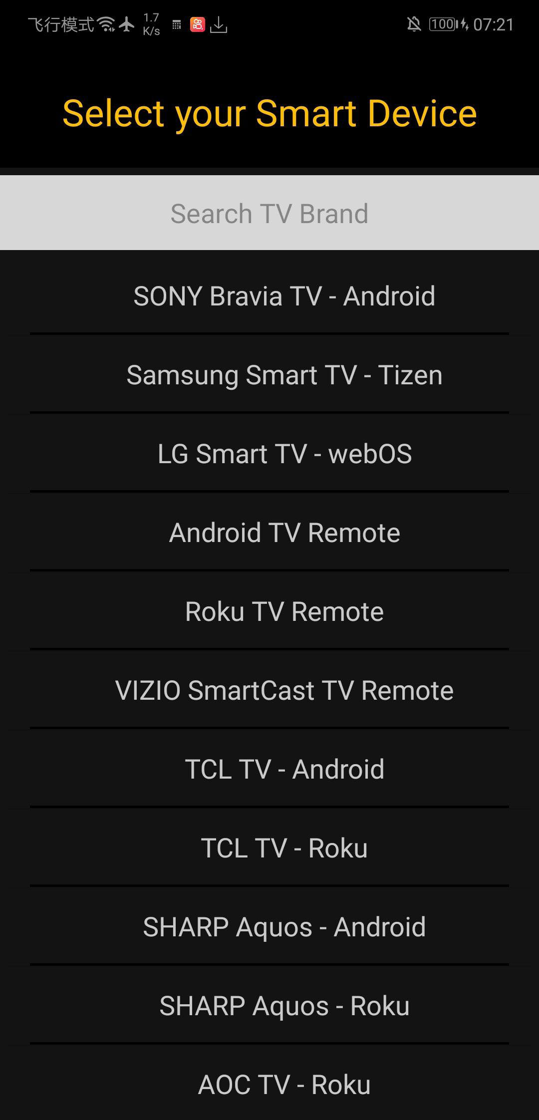 为红外电视时,您的手机必须具有内置的红外 (IR) 功能,应用程序才能用作遥控器。需要红外功能才能像普通电视遥控器一样将信号从手机发送到电视机。