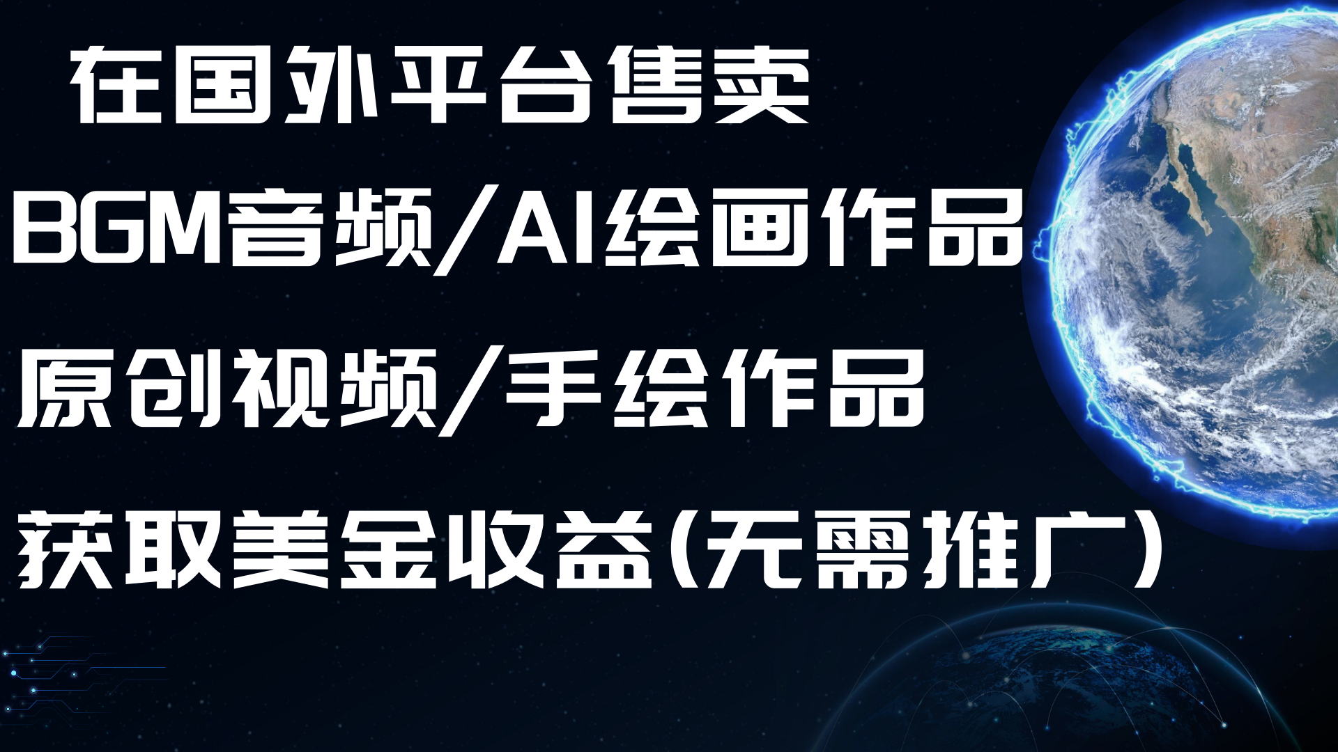 在国外UP4EVER(共享文件)平台上传一些BGM音频,或者原创视频/AI绘画等等,共享平台帮你做推广,咱们只负责上传即可,有人下载就有收益,一条十几秒音频定价1美金左右,价格可自行定价,有人付费下载你的资料即可获取收益。