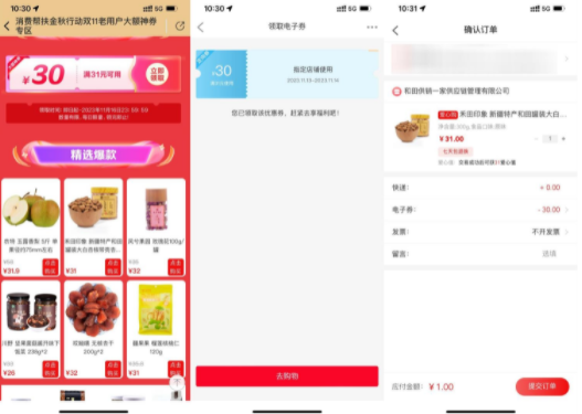 善融商务领30元券1元撸实物