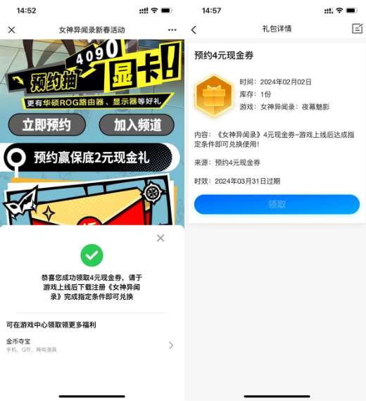 女神异闻录预约领4亓红包卡券