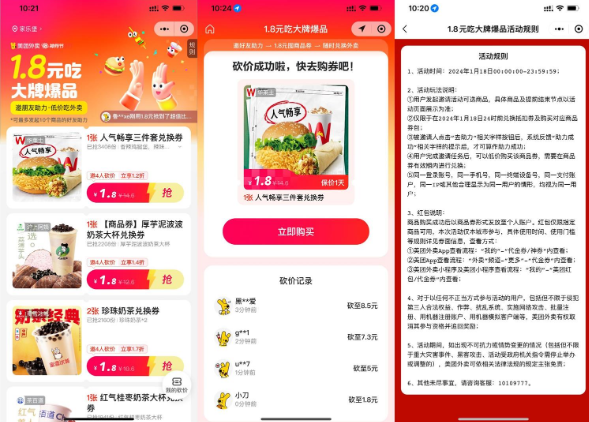 美团4人助力1.8元爆品兑换券