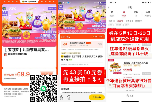 相当于62.9r到手 宝可梦儿童节双人餐,18~20号可用,玩具很香!有需别错过哈~