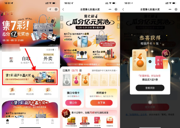 古茗集7彩葫芦卡抽取免单券