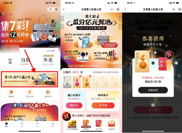 古茗集7彩葫芦卡抽取免单券