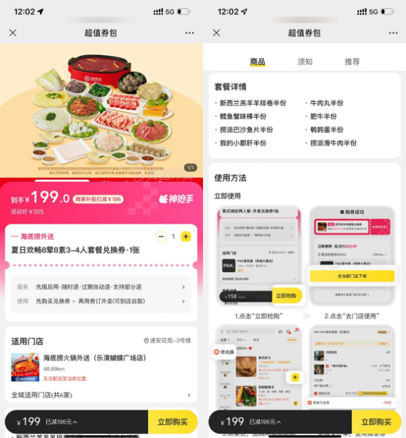 199元购8荤8素套餐,直接海底捞外送到家的,大夏天在家吹空调吃火锅美滋滋!
