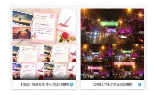 1:找模板打开百度搜索:AE表白模板,烟花表白模板.。
