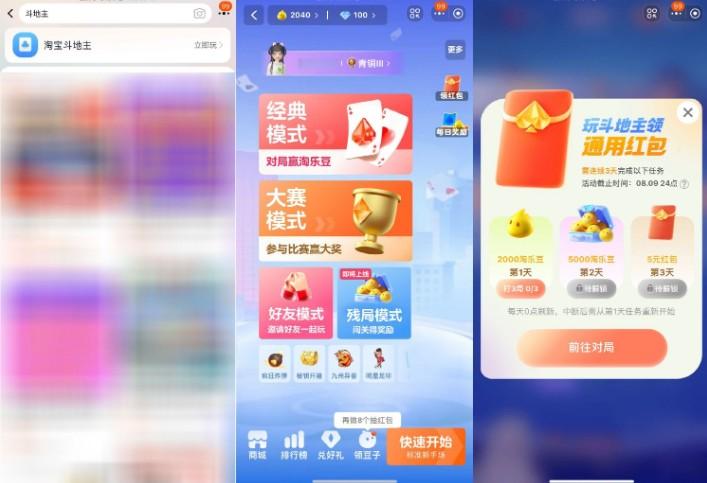 淘宝玩3天斗地主领取5亓红包