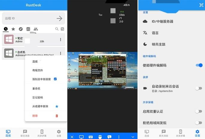 RustDesk手机版是一款开可定制化的远程桌面软件,其采用加密协议,保护用户数据安全,如果担心免费的网络服务不是很稳定,还可以选择自己安装服务器进行使用!为了保证传输的稳定性,可调节画面质量,共有三种模式供选择!而作为远程访问软件,最重要的就是画面质量和速度,并且支持音频输出。如果你想要进行多平台写作办公,相信这款软件能够为你提供很好的帮助。
