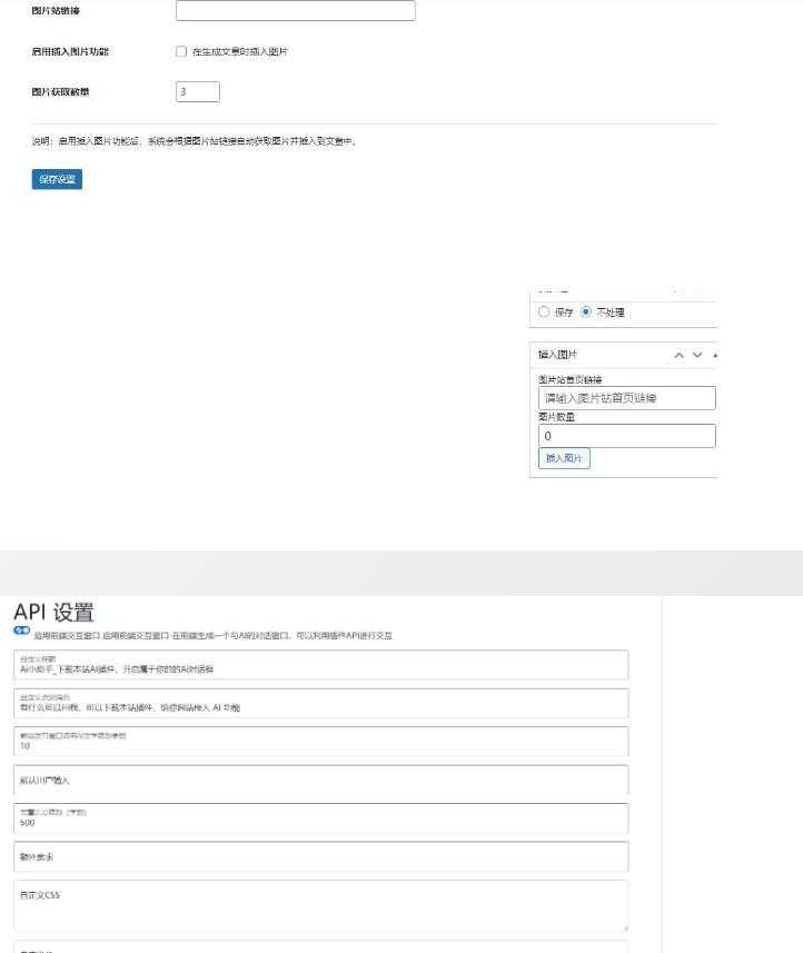 支持手动在文章编辑页插入图片站图片,和插件后台设置自动跟随AI生成的文章插入输入数量的图片站图片(定时任务生成文章自动插入图片)