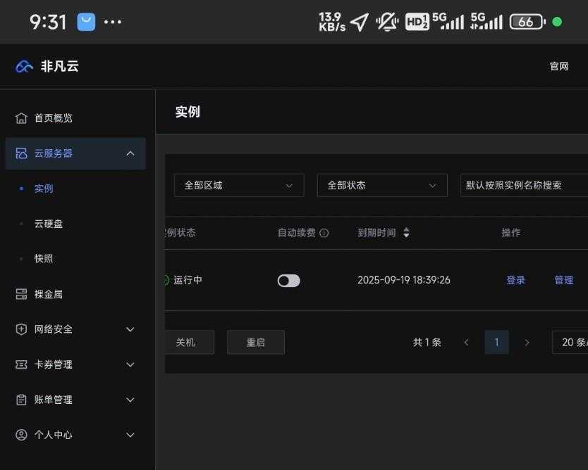 3、右上角,【控制台】,【云服务器】【实例】,【购买实例】最下面,选择9元服务器。