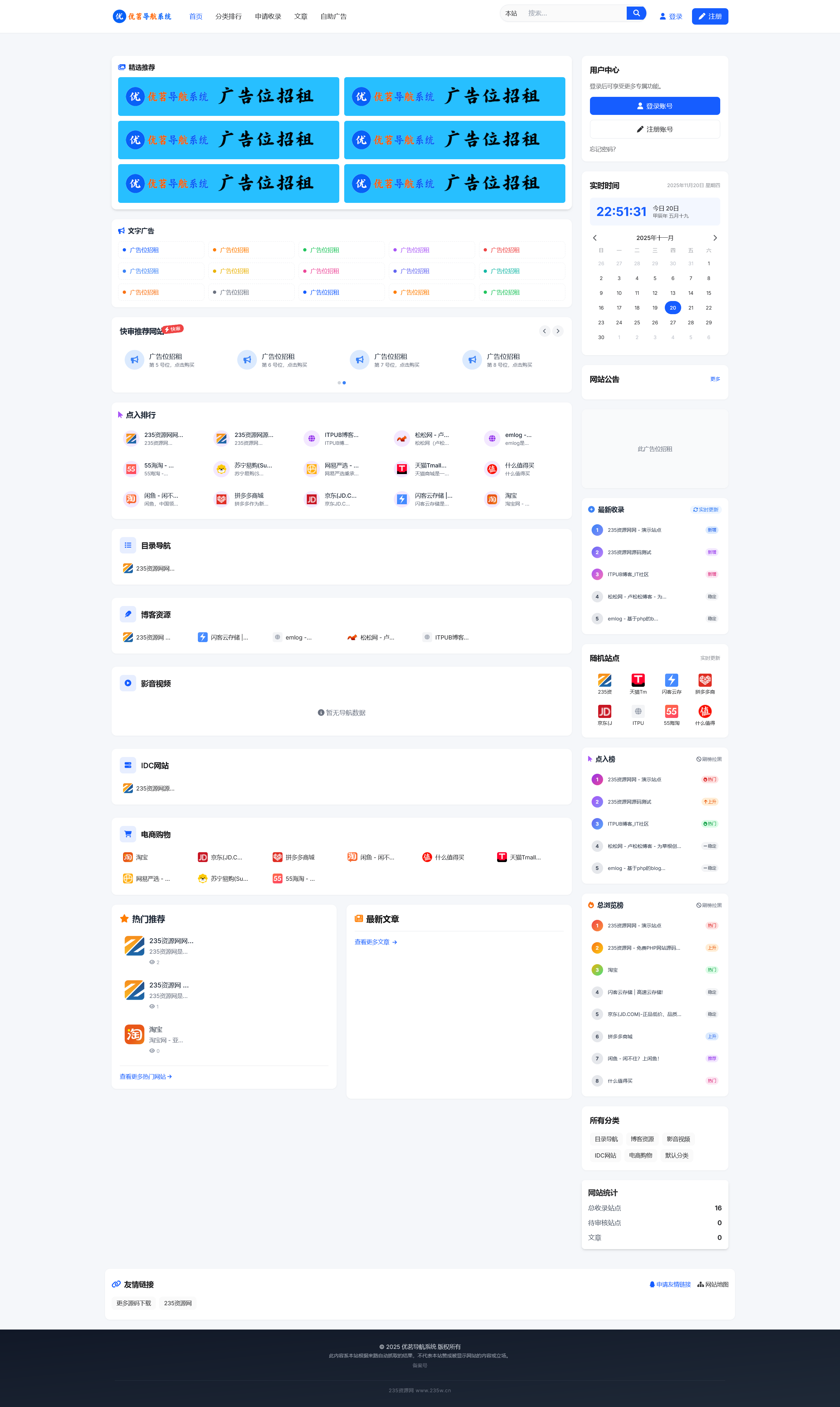 - 11-22 最新优茗导航系统源码/全开源版本/精美UI/带后台/附教程