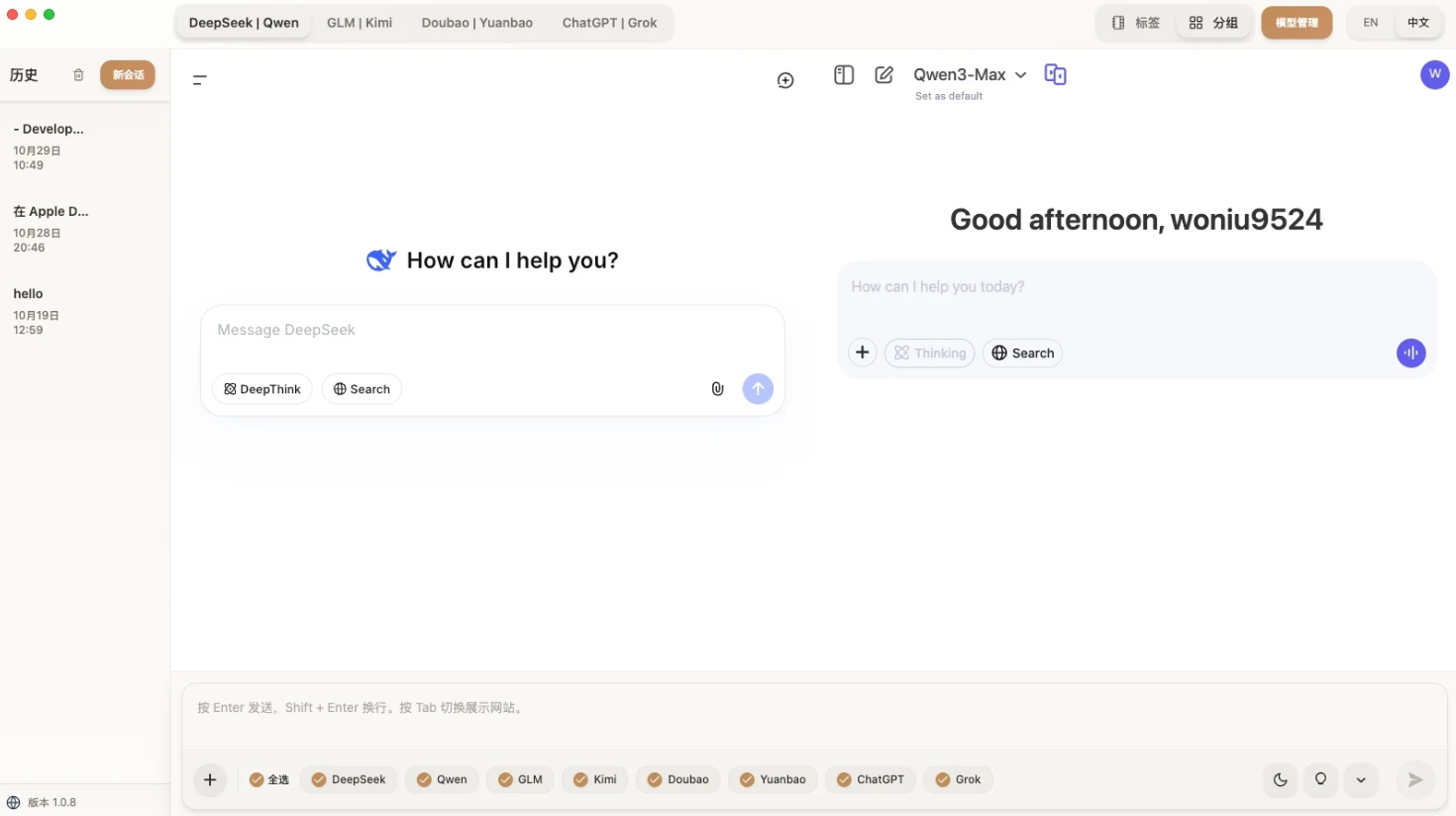 多个AI并行对话桌面对话应用,让ChatGPT、Kimi、DeepSeek等大模型同步作答