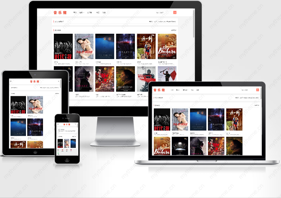 音乐猪电影网站简约响应式苹果cms模板