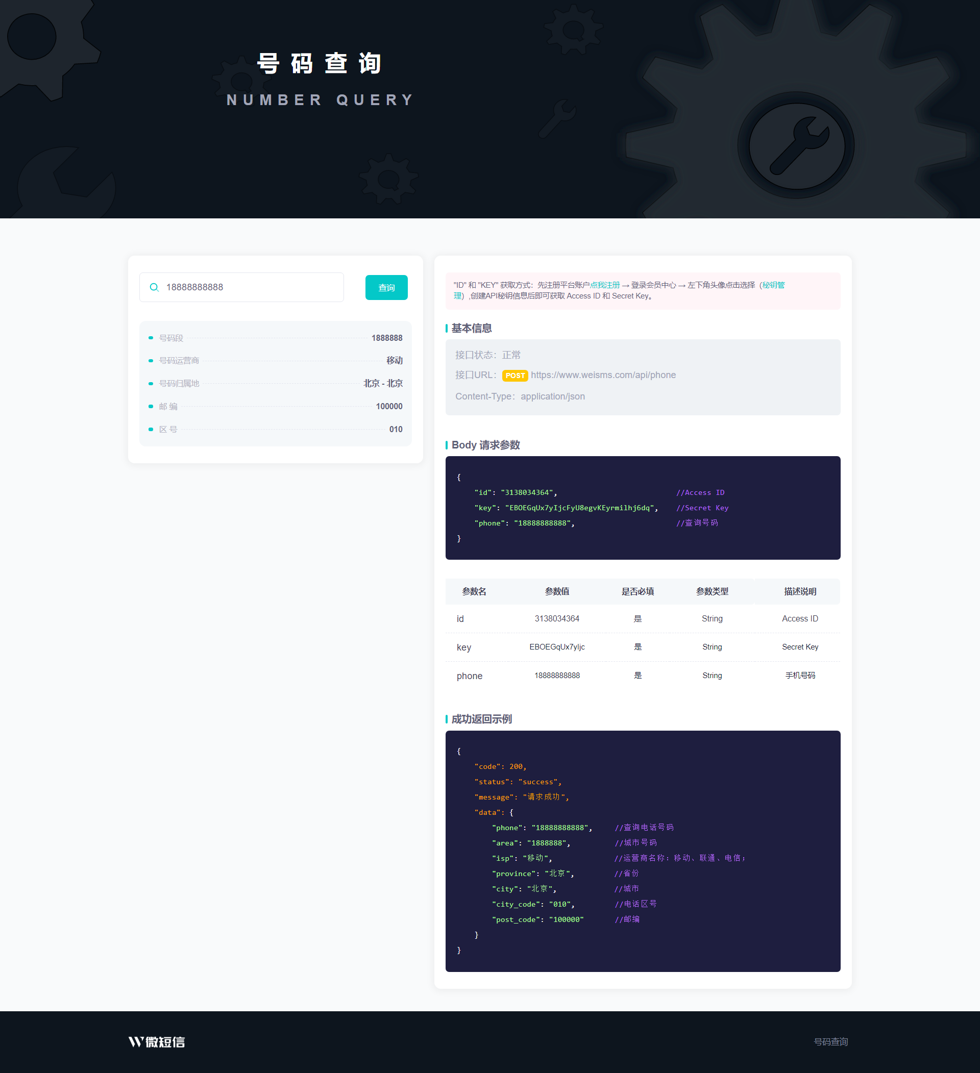 接口介绍:该接口目前已集成 472,020 条归属地查询记录,目前应该是最全面的,源码全部开源,该源码搭建非常简单,直接上传解压缩文件即可访问,PHP环境版本7.0以上即可,虚拟空间都可以使用,无需安装数据库,无需配置伪静态,无后台,不支持上传二级目录访问!