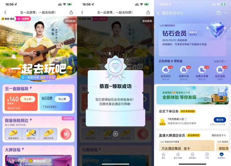 美团酒店免费领7天钻石会员
