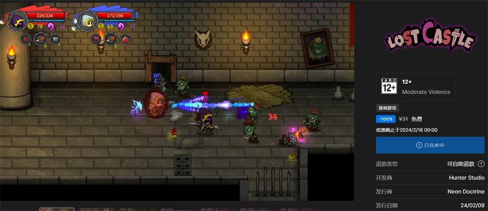 领取地址:https://store.epicgames.com/zh-CN/p/lost-castle-abb2e2