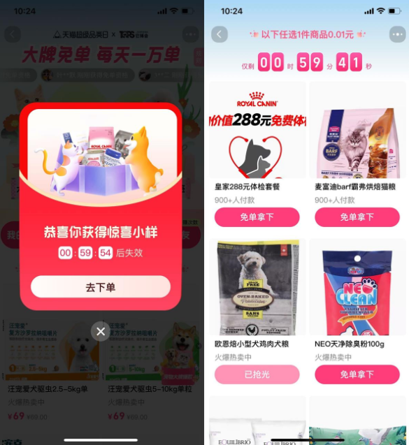 淘宝超级品类日抽宠物用品免单